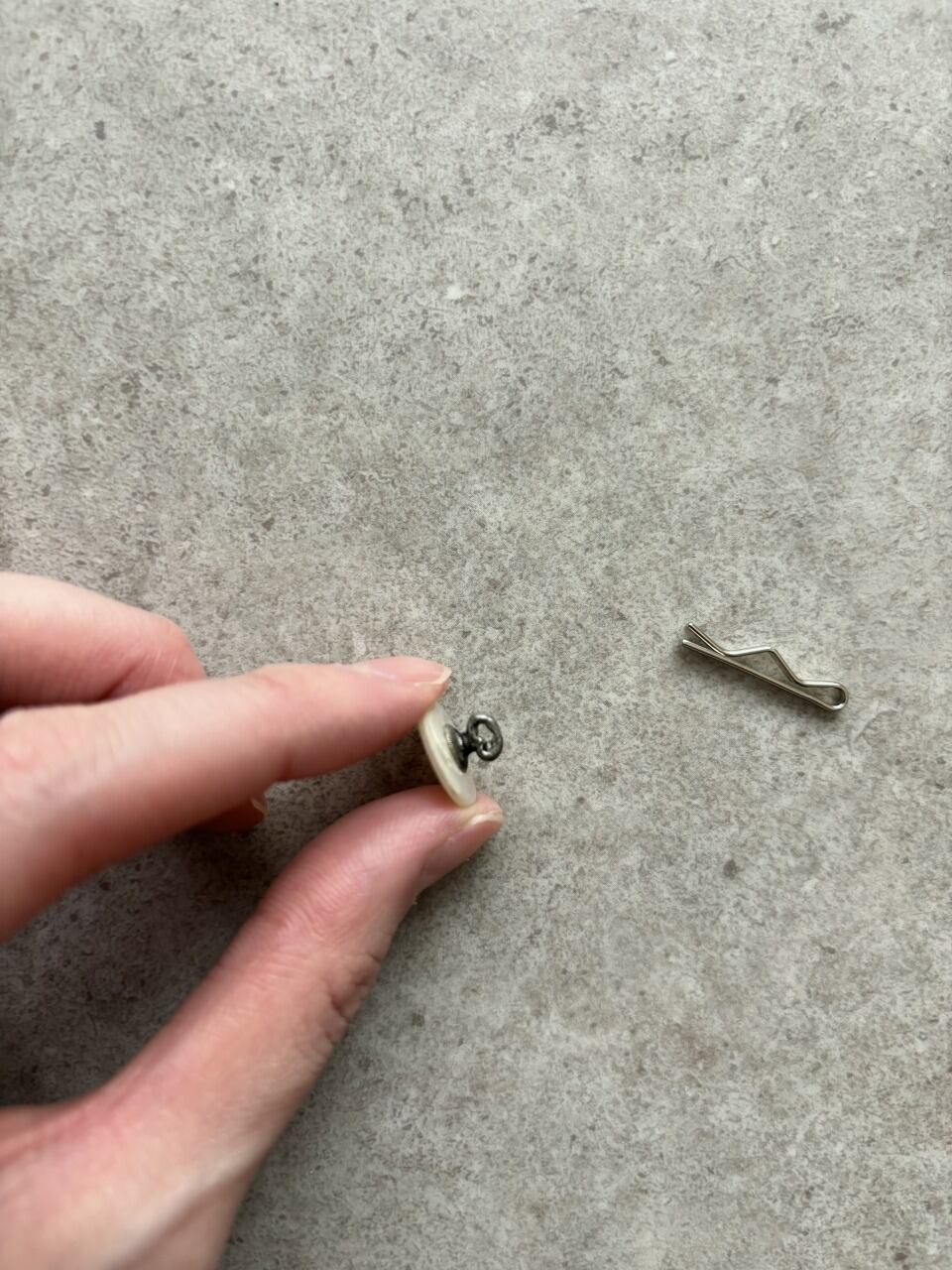 胸元には取り外し可能なチェンジボタンがついています。胸元一番上のボタン、カフスボタンは付属しません