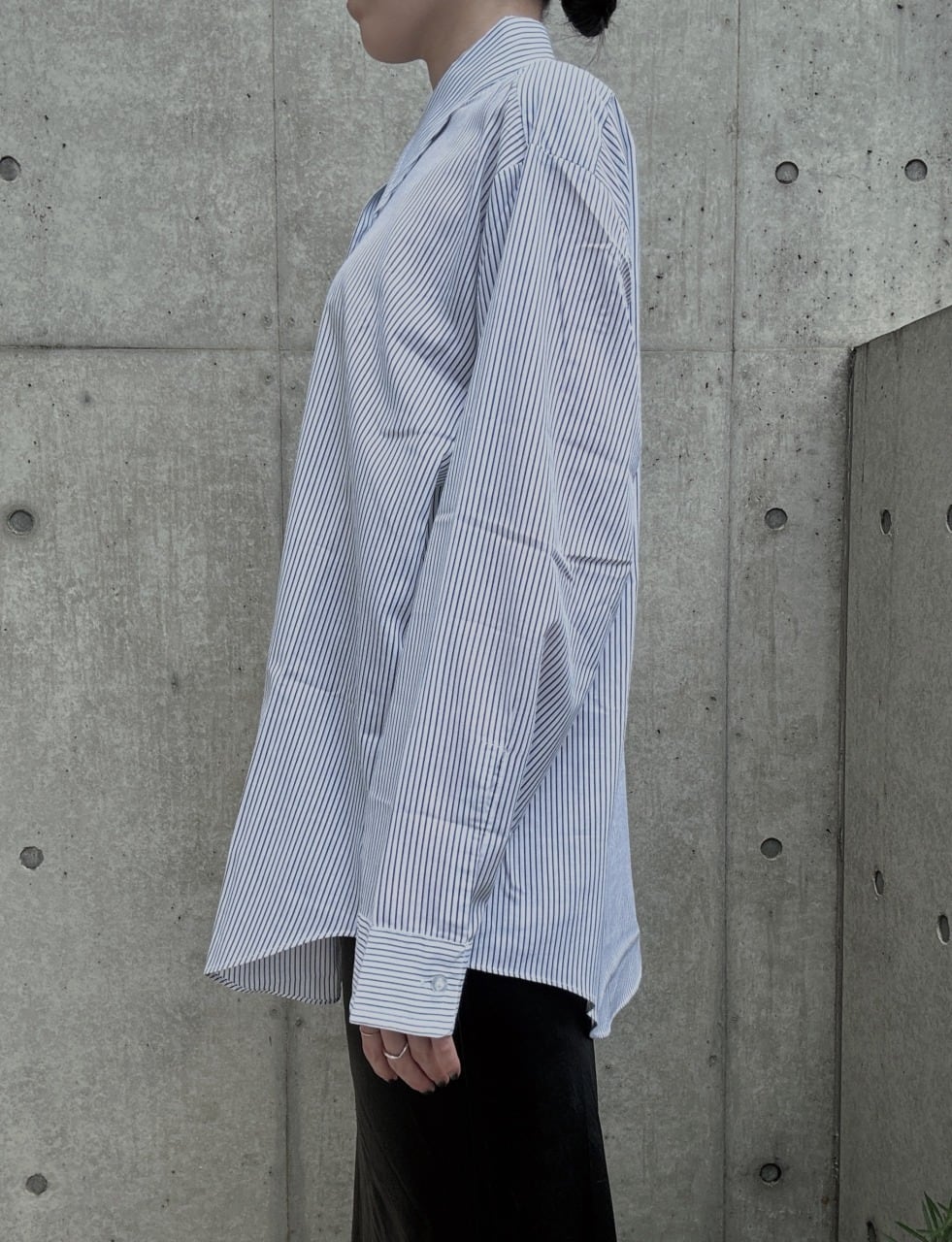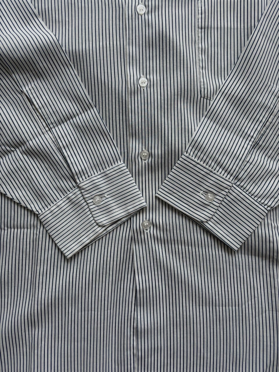 ブルーストライプが効いたクリーンでハンサムな一枚です。