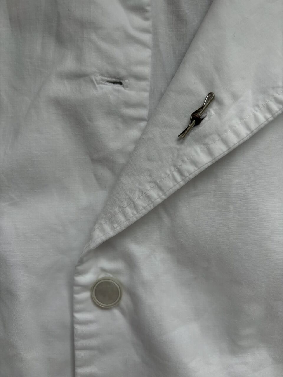 胸元には取り外し可能なボタンが付属します。胸元一番上とカフスのボタンは付属しません。