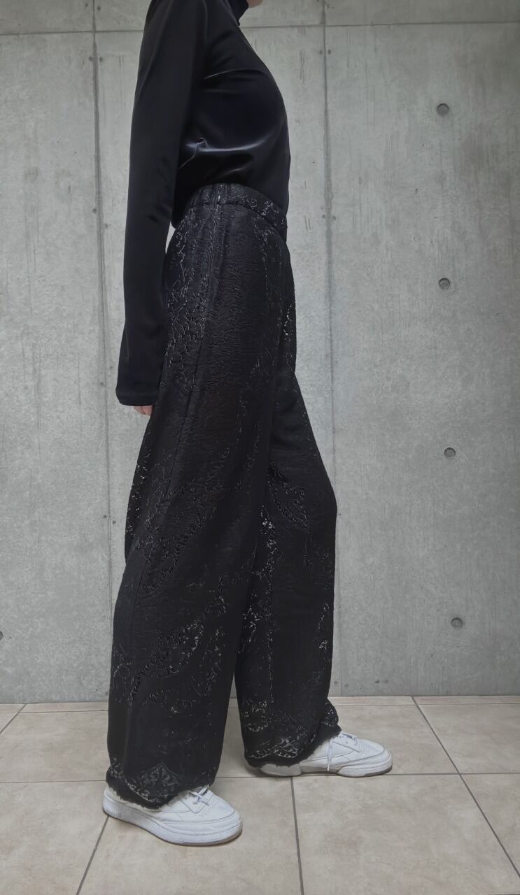 【マーブルブラックレース】ヴィンテージレースパンツ - リメイク × 京黒染めオーバーダイ